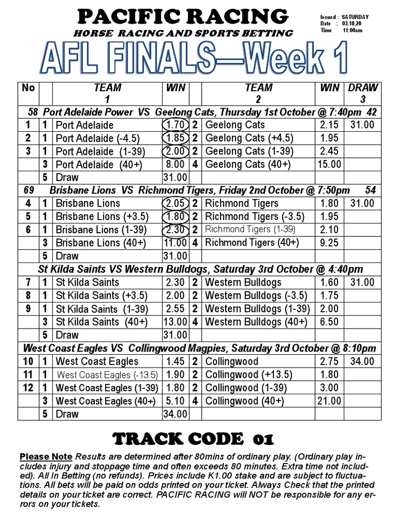 Afl Finals Wk1 Saturday Pacific Racing Pdf Football Codes Athletic Sports